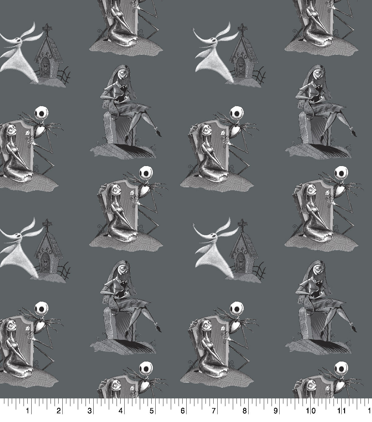 Gray Graveyard Scene Nightmare Before Christmas Cotton Fabric