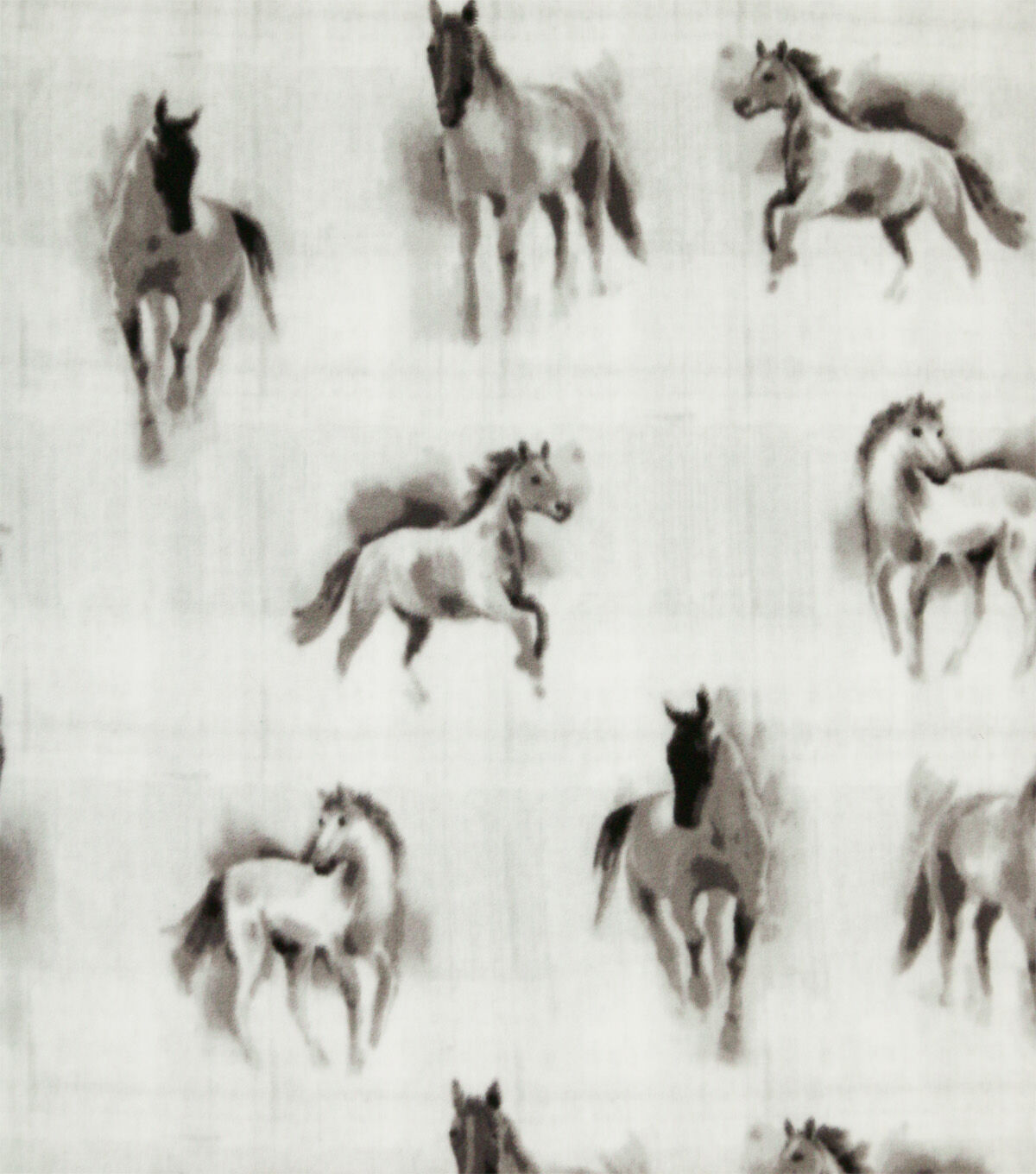 Wild Horses on White Anti Pill Plush Fleece Fabric