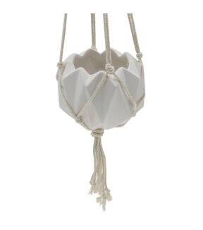 Flora Bunda 5" White Ceramic Macrame Hanging Planter